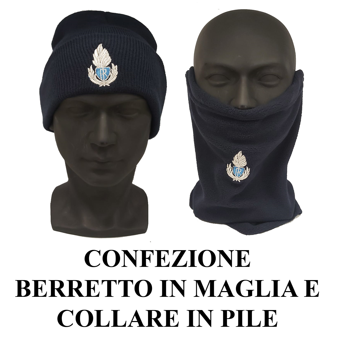 Confezione con berrettino in maglia fregio Penitenziaria e collare in pile Polizia Penitenziaria