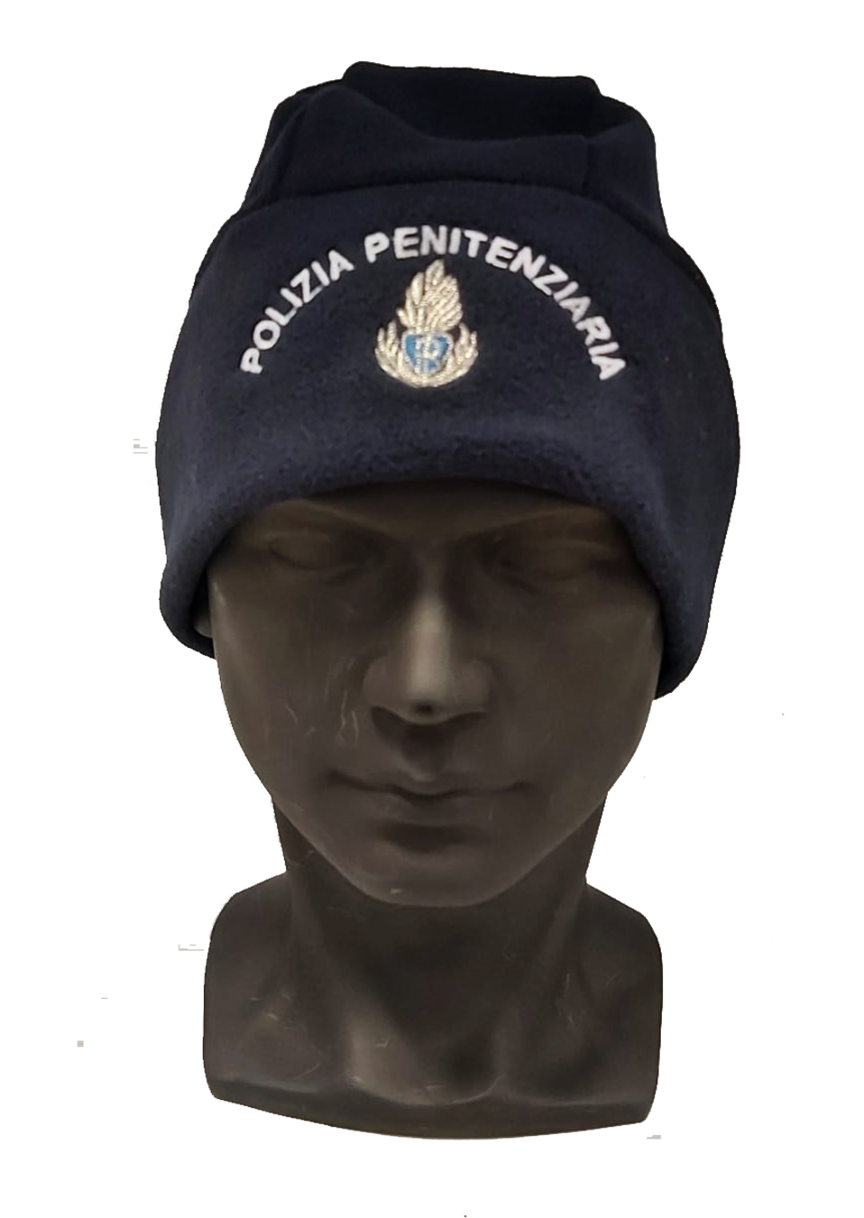 Berrettino in pile con ricamato fregio Polizia Penitenziaria e scritta